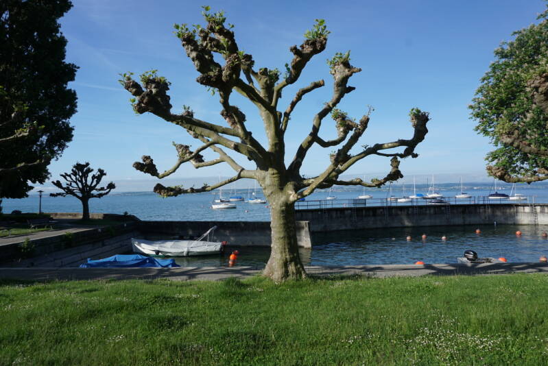 Nach einem kleinen morgendlichen Anstieg haben wir einen kleinen Soldatenfriedhof besucht. Auch in den Weinbergen gibt es ein reges Treiben. Nach Hagenau sind wir bis nach Immenstaad gewandert, wo wir unsere deutschen Freunde Heidi und Werner getroffen haben. Nach einer guten Jause, die die beiden für uns mitgebracht haben, sind wir weiter marschiert. Leider ist der Weg bis zum Zeppelin-Museum sehr anstrengend, da wir fast immer auf einer asphaltierten Straße unterwegs waren. Das heutige Hotel liegt im Hafen von Friedrichshafen, und man kann direkt vom Zimmer aus auf den See schauen. Wir haben natürlich auch das Zeppelin Museum besucht. Auch eine Apotheke haben wir für diverse Fußwehwehchen benötigt.